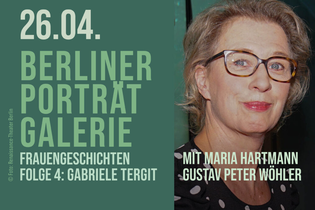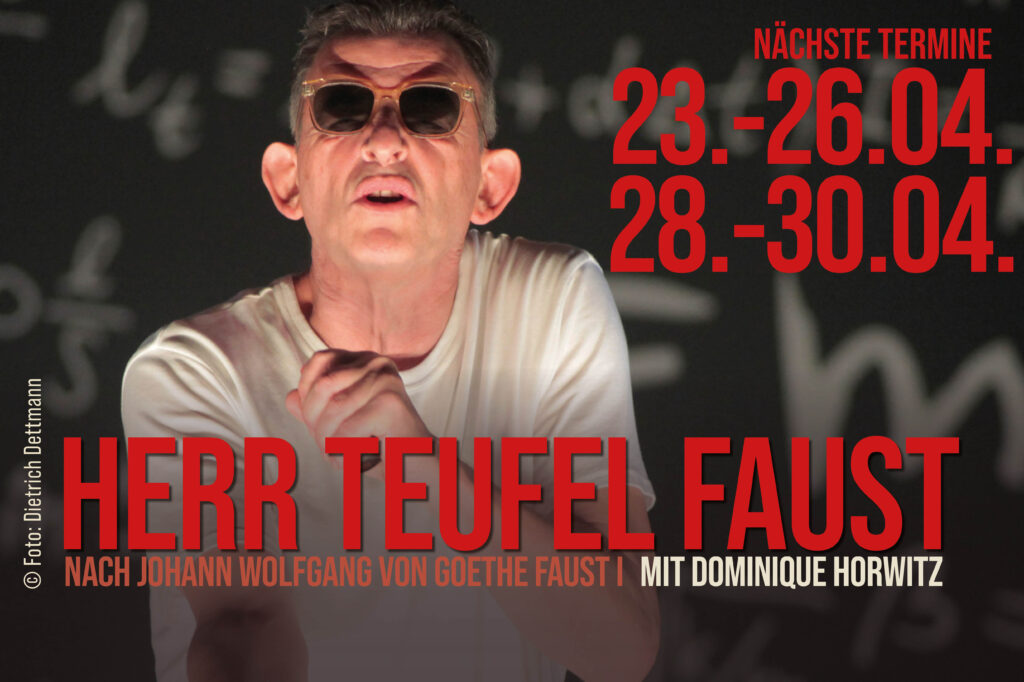 +++ 22.04. - 30.04.: HERR TEUFEL FAUST - NACH JOHANN WOLFGANG VON GOETHE FAUST I - Bearbeitung von Torsten Fischer mit Dominique Horwitz +++ 25.04.: Führung durch das Renaissance-Theater +++ 26.04. BRUCKNER-FOYER: Berliner Porträt Galerie - Frauengeschichten Folge 4: Gabriele Tergit - Matinee von und mit Maria Hartmann, als Gast: Gustav Peter Wöhler +++ 07.05.: NA ALSO. GEHT DOCH. EINE KOMÖDIE. Mit Nicole Heesters (VORAUFF.) +++ 08.05.: NA ALSO. GEHT DOCH. EINE KOMÖDIE. Mit Nicole Heesters (PREMIERE) +++ 09.+10.05.: NA ALSO. GEHT DOCH. +++ 11.05.: JAKOB AUGSTEIN IM GESPRÄCH MIT JÖRG BABEROWSKI – Der radioeins und Freitag Salon +++ 13.05.: KAPUTT IN HALLYWUDD – mit Valerie Neuenfels, Anneke Kim Sarnau und Pip van Eeden +++ 14.05.: ROBERT KREIS – FÜR HEITERE KREISE +++ 15.+16.05.: Max Hopp singt Heinz Erhardt – DURCH DEN ERNST DER ZEIT +++ 17.05.: DAS GLÜCK RENNT HINTERHER (RT PREMIERE) – Chansons mit Maria Thomaschke und Nikolai Orloff +++ 18.-21.05.: NA ALSO. GEHT DOCH. EINE KOMÖDIE. Mit Nicole Heesters +++ 23.-25.05.: SOPHIA ODER DAS ENDE DER HUMANISTEN (DE) - von Moritz Rinke +++ 24.05.: „GELIEBTER LÜGNER" VON JEROME KILTY +++ 26.05.: LITERARISCHER STREIFZUG: ELISA HOVEN „FEINE RISSE" – BUCHPREMIERE +++ 27.+28.05.: SOPHIA ODER DAS ENDE DER HUMANISTEN (DE) - von Moritz Rinke ++ 29.-31.05.: BERTA, DAS EI IST HART – Eine musikalische Lesung nach Loriot mit Martin Brambach